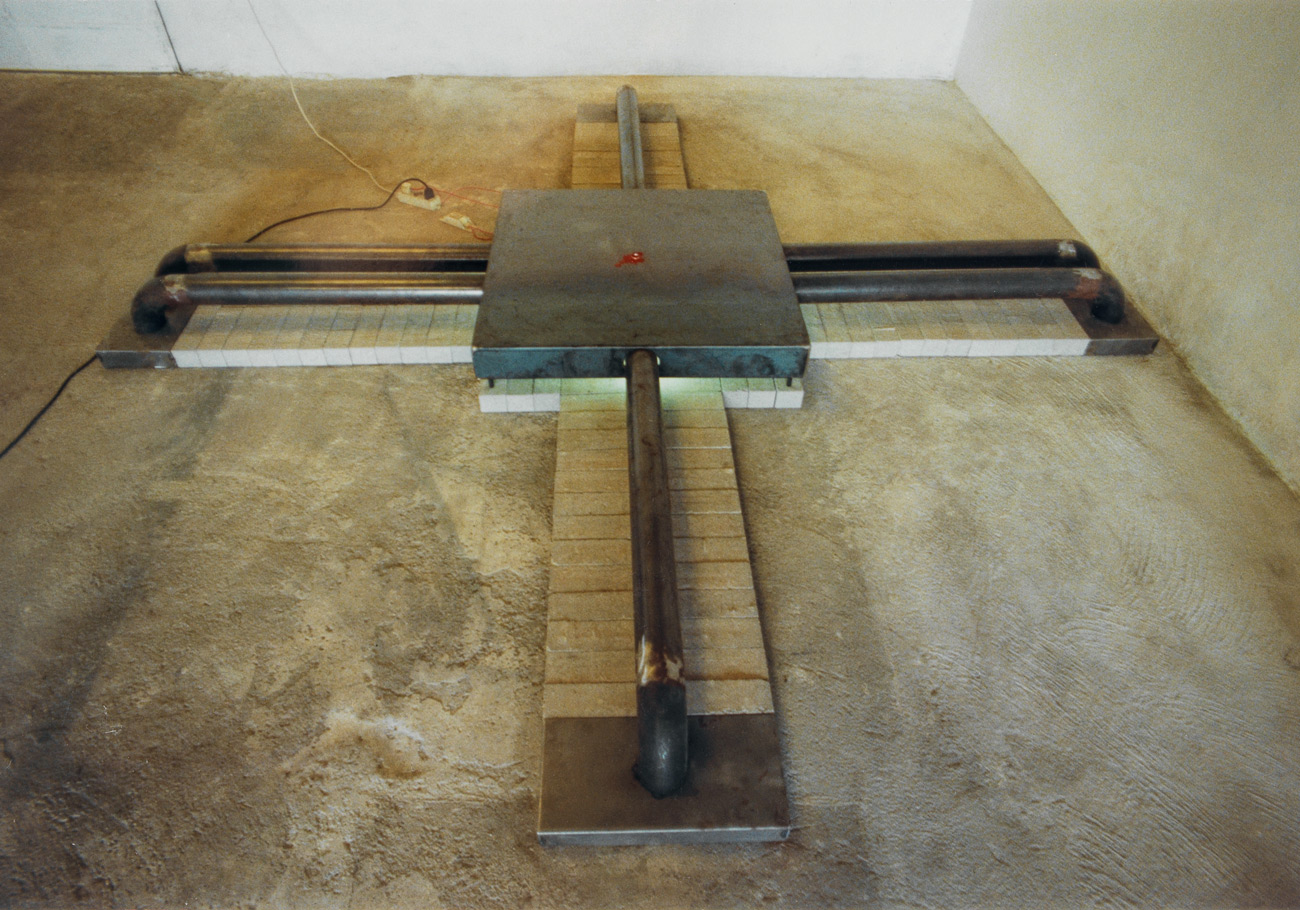 still, cement and neon light